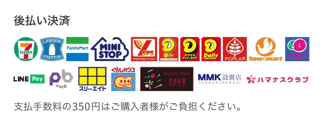 BASEかんたん決済」の以下の6通りの方法でお支払いいただけます。