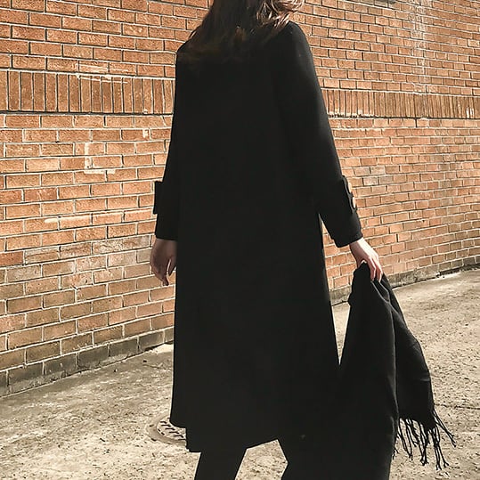 ブラックのワントーンカラーがスタイリッシュなチェスターコート。