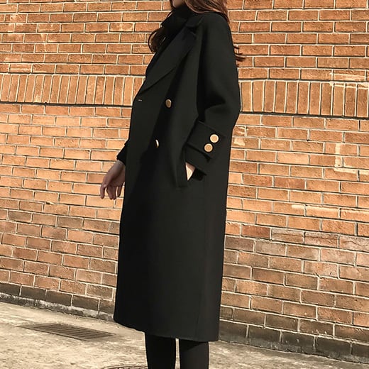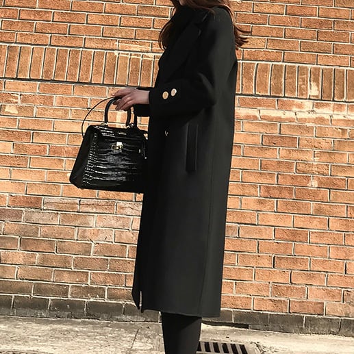 【即納】1点限定 エレガントで上品な大人の装い チェスターコート ミディアム丈 ウール ブラック 秋冬 エレガント 大人カジュアル きれいめ 大きいサイズ 韓国 CH2330