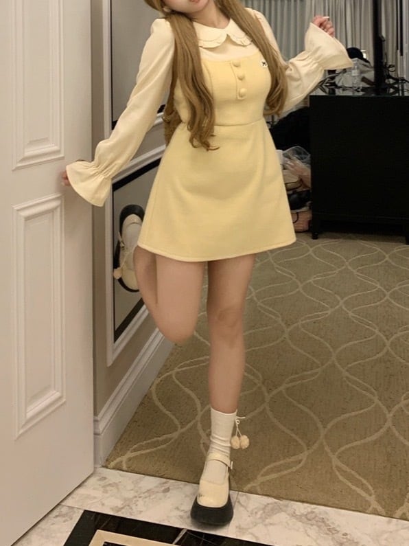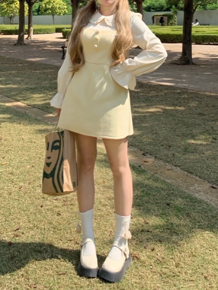 丈が選べる♡ 乙女心くすぐる フレンチガーリーワンピ カジュアルフェミニン デート 楽ちんおしゃれ スタイルアップ サイズ 韓国 CH10533