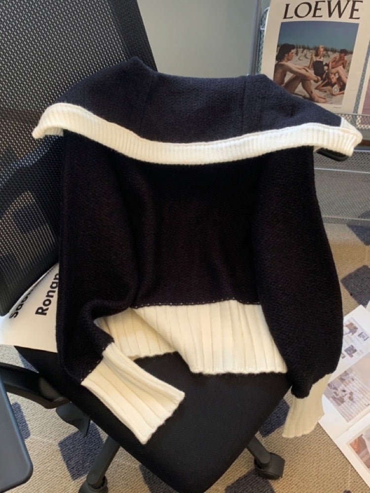 春のクラシカルムード漂う バイカラーデザインカーディガン ビックカラー 大人可愛い アウター きれいめカジュアル 大きいサイズ 韓国 CH10424