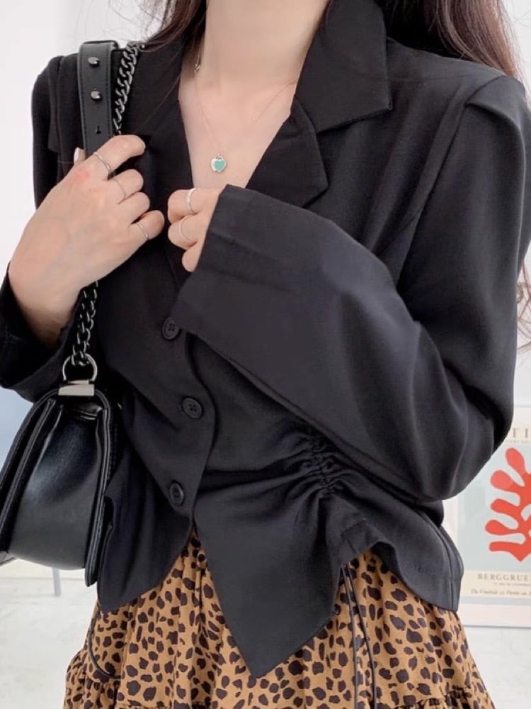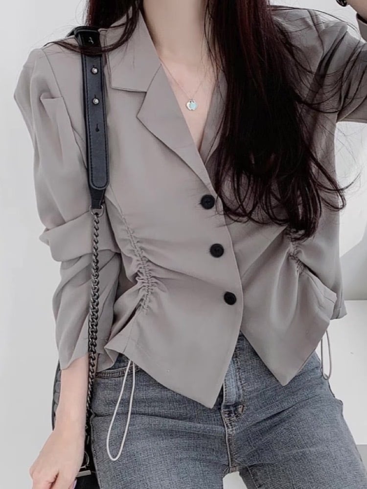 美シルエットが叶う シャーリングショートブラウス 長袖 大人可愛い お洒落 上品 カジュアル きれいめ デート お出かけ 体型カバー 大きいサイズ 韓国 CH10408