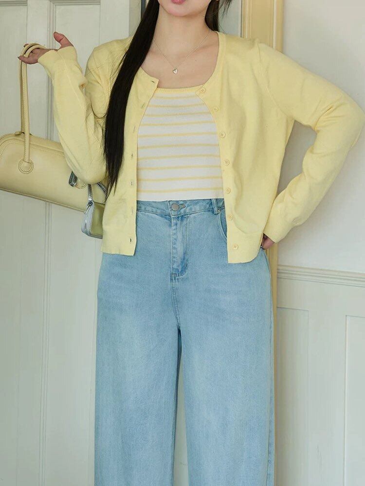 気分高まる爽やかアイテムセット♡ カーディガン×ボーダーキャミソール 2点セット 大人可愛い ボーダー お洒落 着回し カジュアル きれいめ 差し色 お出かけ 大きいサイズ 韓国 CH10501