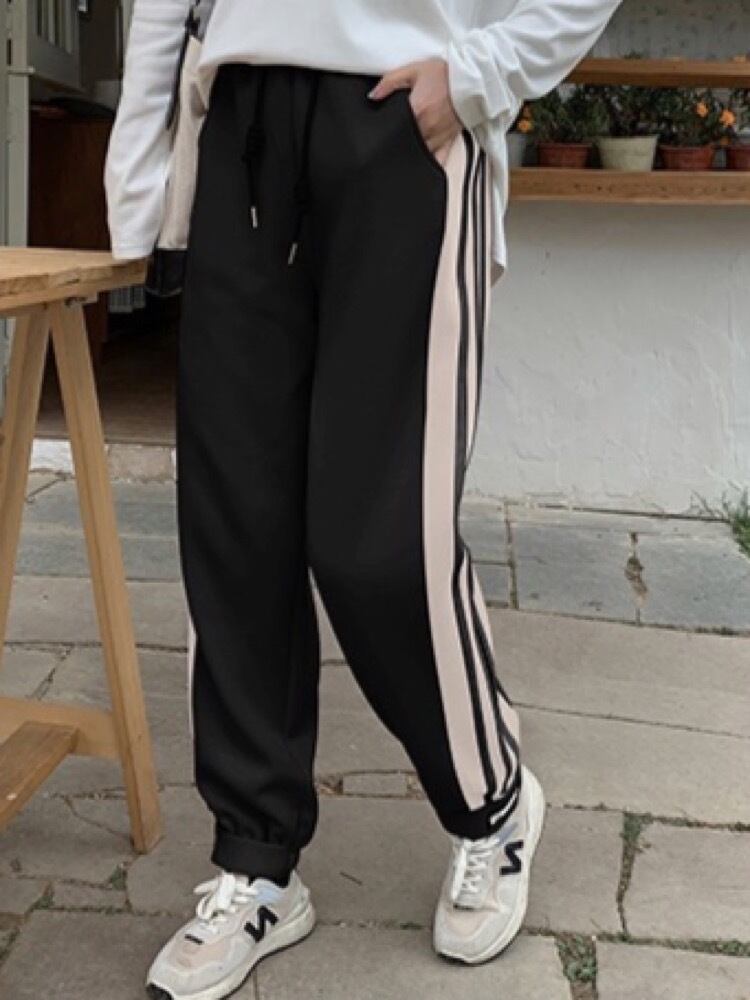 ゆるっと今っぽく サイドライン配色スウェットパンツ スポーティー カジュアル ストリート ルームウェア ジョガーパンツ 可愛い 大きいサイズ 韓国 CH10531