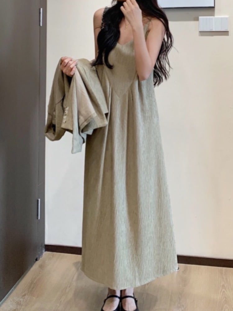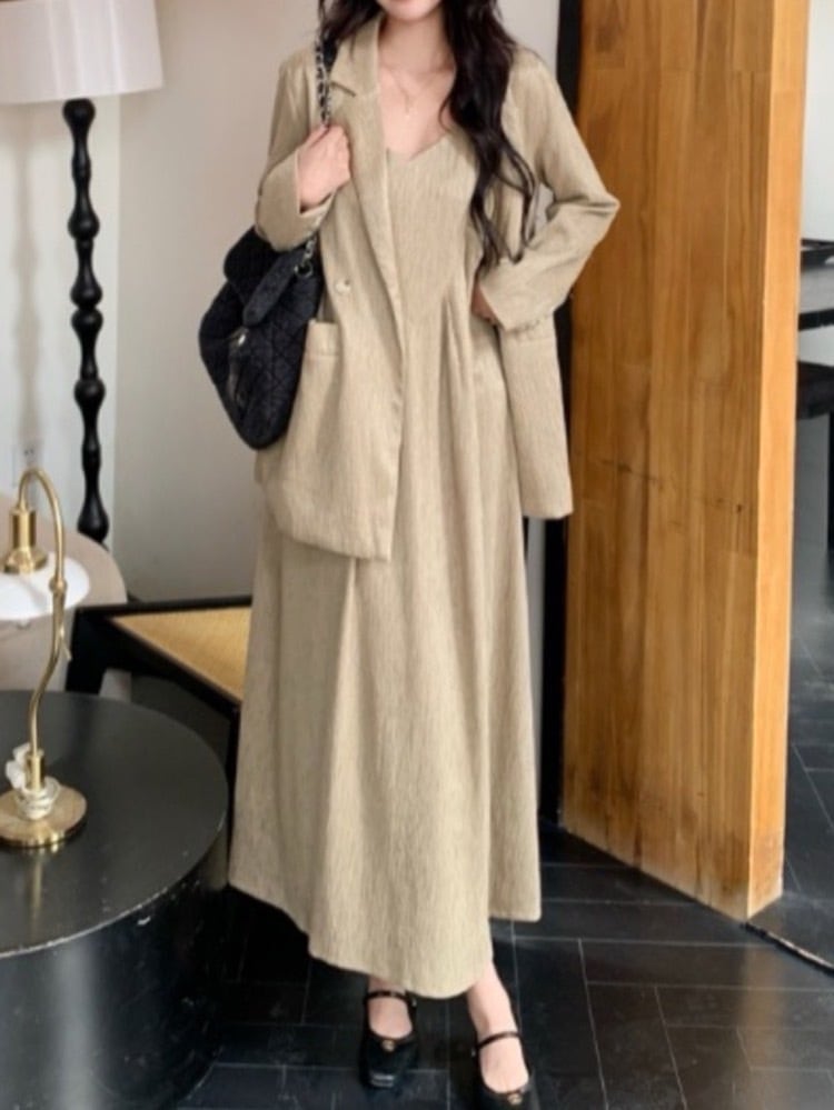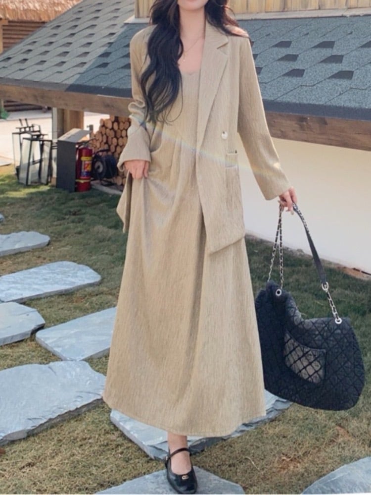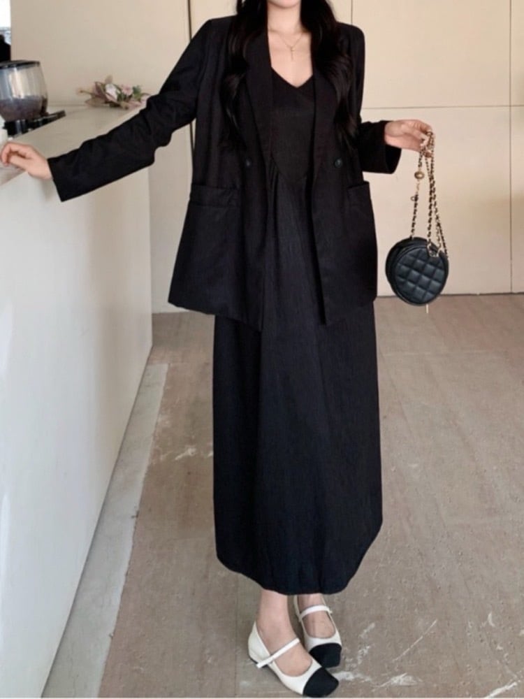 着るだけで“絵になる” 美人映えセットアップ キャミワンピース ジャケット 2点セット 上品 抜け感 おしゃれ フェミニン 細見え 着回し 大きいサイズ 韓国 CH10541