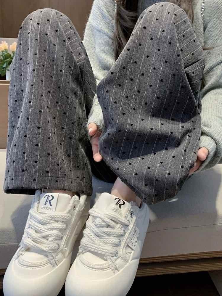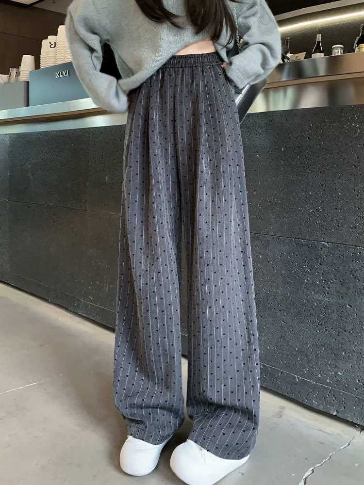 さり気なく可愛く、キリッと大人っぽ♡ ハートドットイージーパンツ 大人可愛い ドット ハート ストライプ きれいめ カジュアル オフィス お洒落 着映え 細見え 脚長 大きいサイズ 韓国 CH10556