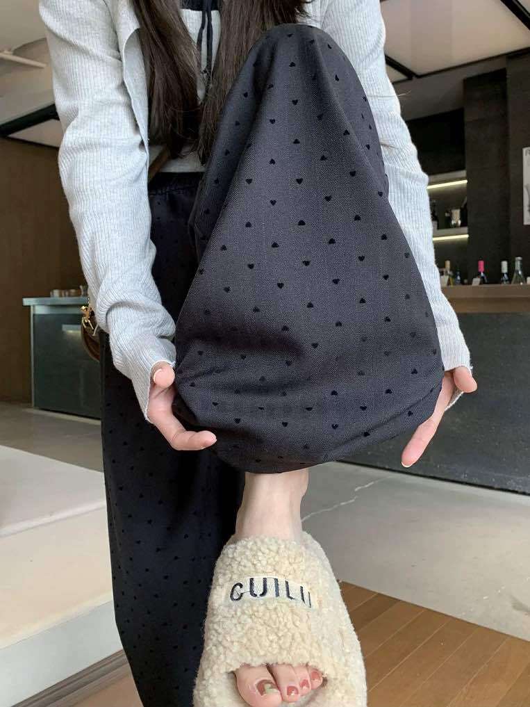 小さなハートドットがさりげなく愛らしい、ワイドシルエットのリラクシーパンツ♡