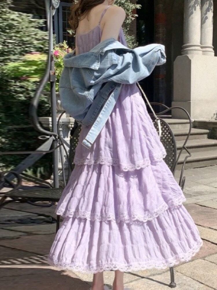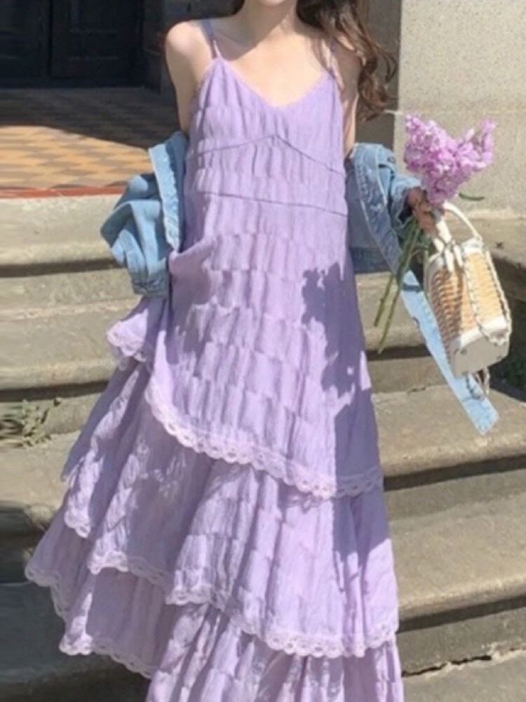 甘すぎない大人のフリル ティアードロングキャミワンピース 大人フェミニン Vネック シフォン 着やせ 体型カバー 大きいサイズ 韓国 CH10558