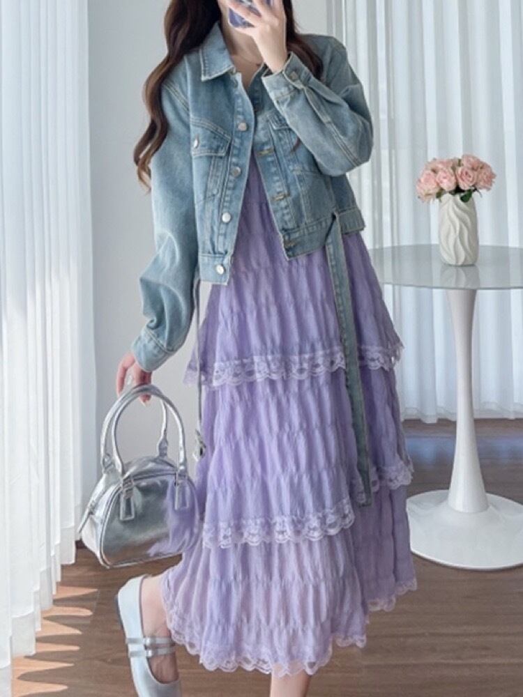 重なり合うフリルで自然と縦ラインが強調され、ゆったり着られるのにスッキリ見える嬉しい設計。胸下の切り替えから広がるシルエットは、ぽっこりお腹やヒップラインもカバー。