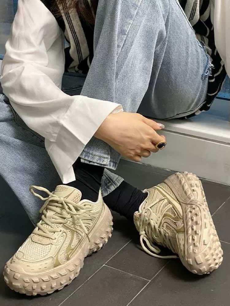 通気性の良いメッシュ素材と存在感抜群のボリュームソールが、足元に抜け感とこなれたムードをプラス♡