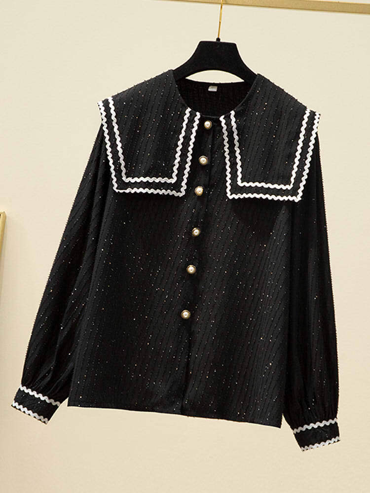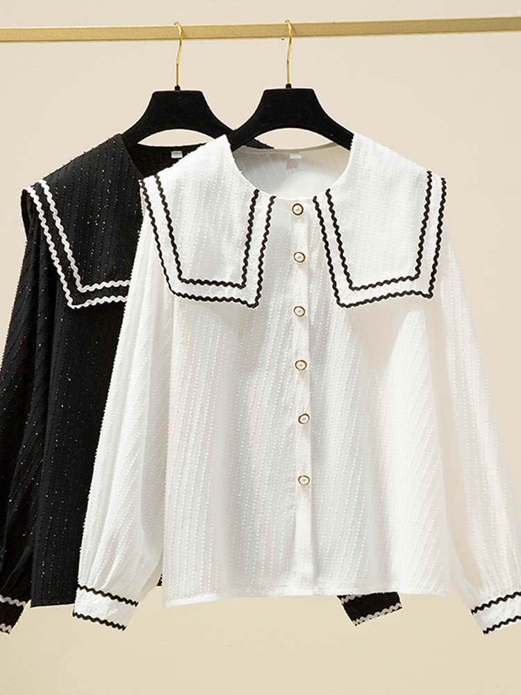 【即納】1点限定 セーラーカラージャガードドットブラウス ガーリーコーデ カジュアル かわいい おすすめ 春 定番 大きいサイズ 韓国 CH8541
