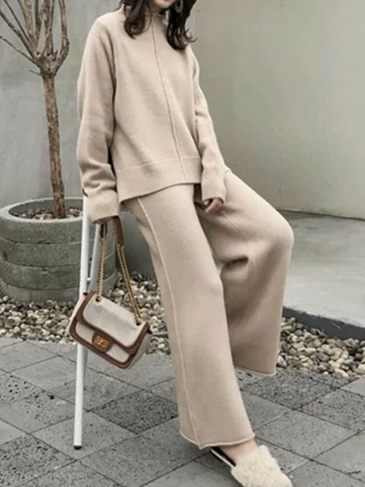【即納】1点限定 着るだけでサマ見えする大人コーデ サイドスリットニットセットアップ 長袖 秋冬 ハイネック リブ トレンド おしゃれ 着回し きれいめ カジュアル 細見え 大きいサイズ 韓国 CH9853