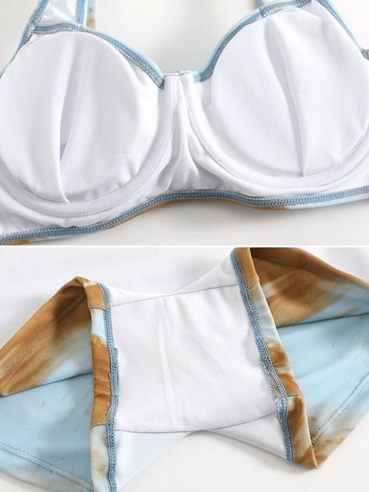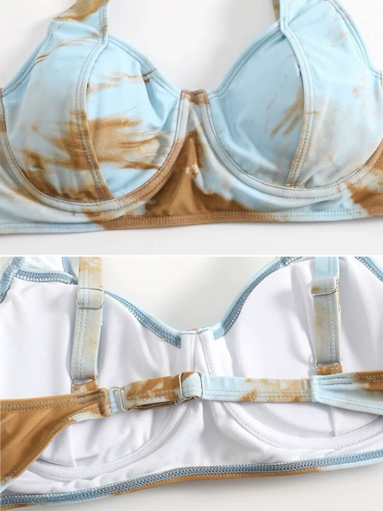 オシャレなバイカラーのタイダイ柄が大人可愛い、セパレートタイプの水着セットです♪