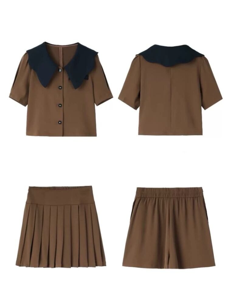 デイリーにもお出かけにもはまる ビッグカラートップス×プリーツキュロットセットアップ 2点セット お洒落 半袖 大人可愛い カジュアル きれいめ バイカラー 着映え 着回し 体型カバー 大きいサイズ 韓国 CH10646