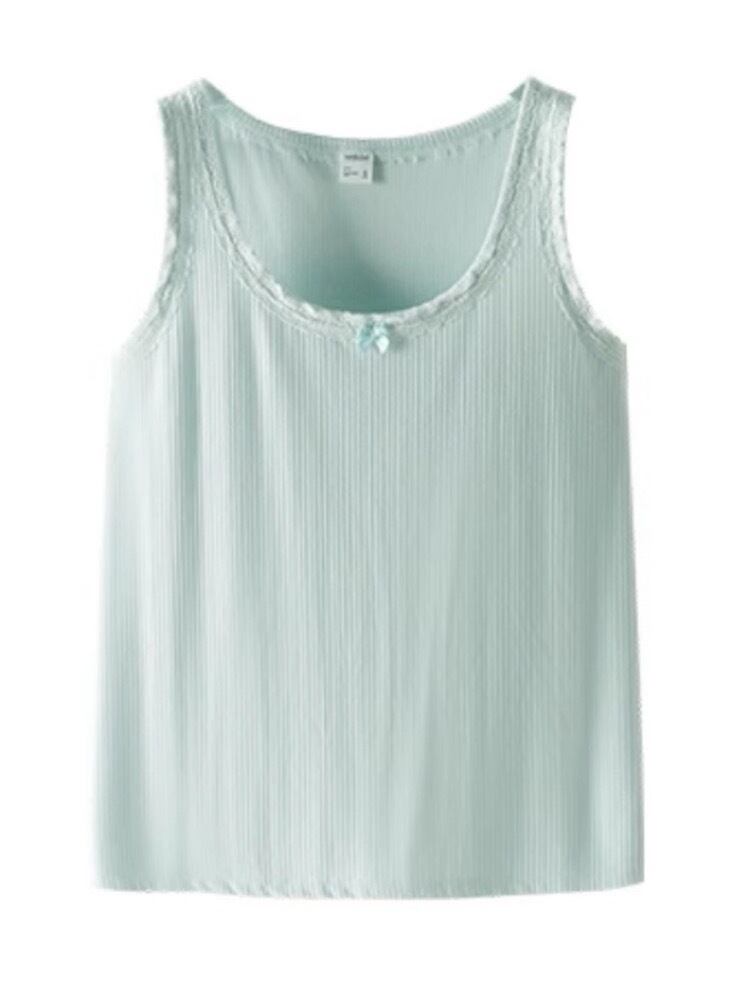やわらかく伸びのいい素材と、繊細なレースの縁取りが女性らしさを引き立てるタンクトップ。