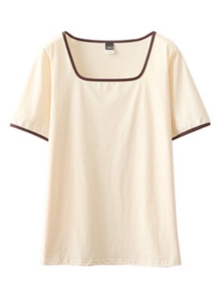 首元すっきり美人見え 配色スクエアネックTシャツ 大人 清楚 カジュアル きれいめ 着回し シンプル 二の腕カバー 大きいサイズ 韓国 CH10649