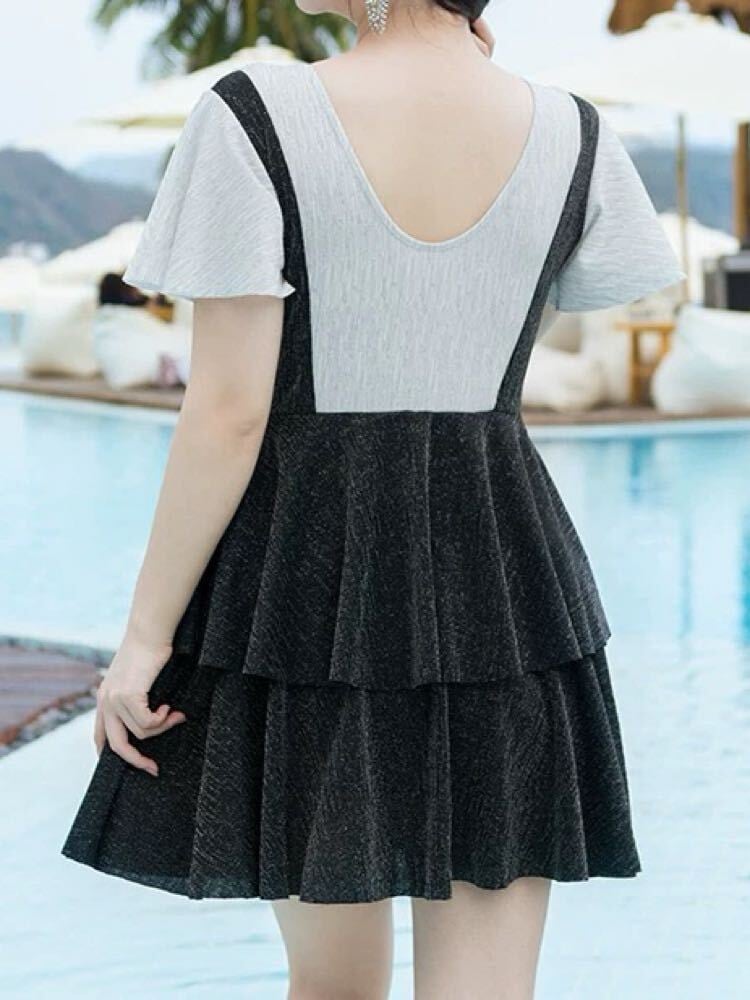 大人かわいくスタイル美人 ジャンスカ風フリルワンピース水着 お洒落 バイカラー 襟付き フリル レイヤード 大人可愛い カジュアル 着映え 体型カバー 細見え 大きいサイズ 韓国 CH10723