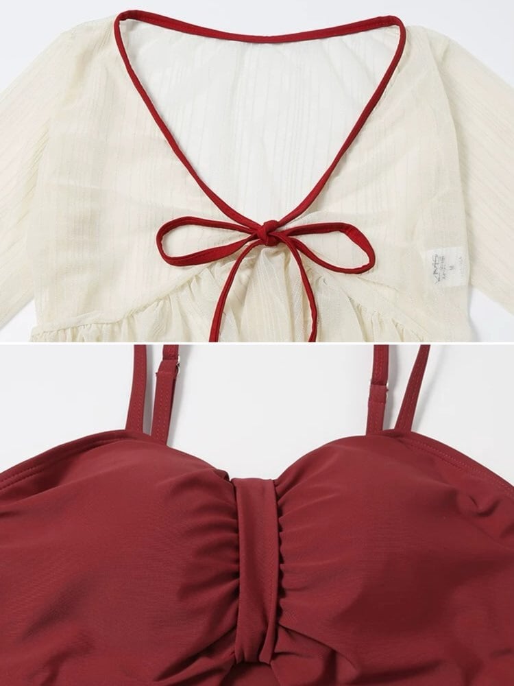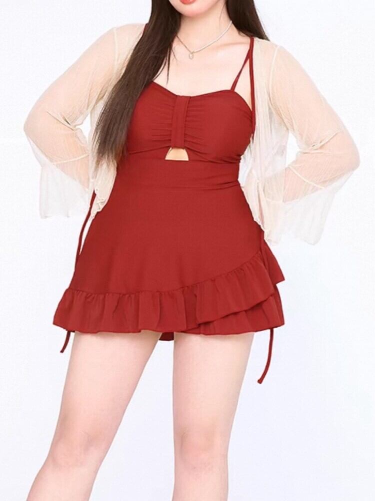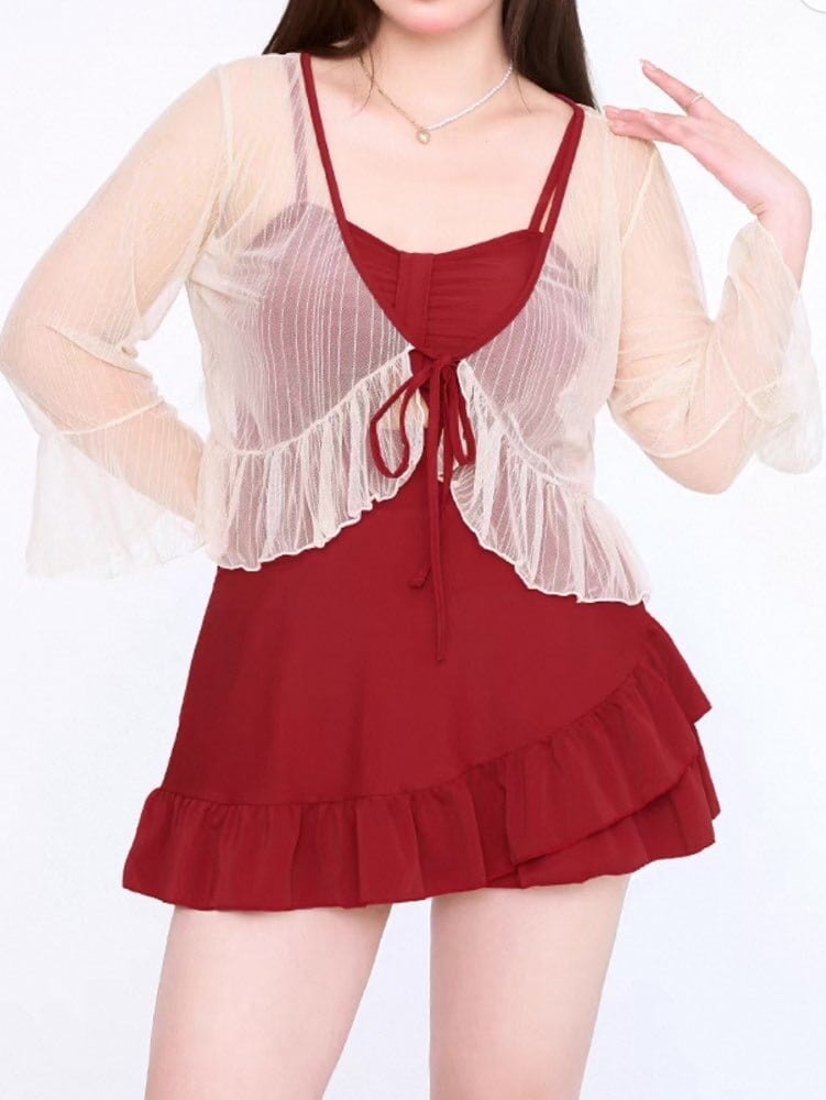 フェミニンで上品♡だけどしっかり体型カバーも叶える優秀な羽織付きワンピース水着です。