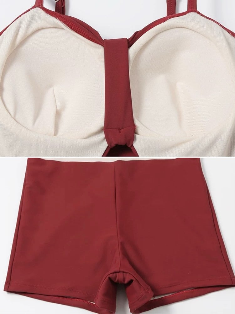 フロント部分のカットアウトと胸元のリボン風デザインが視線を引き上げ、スタイルアップ効果も抜群です◎