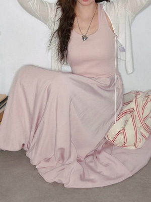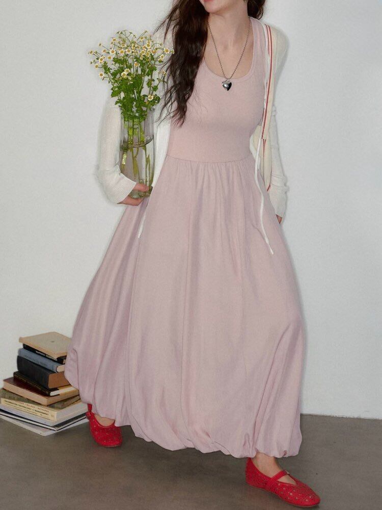 リラクシーに楽しむキュートスタイル ノースリーブバルーンワンピース おしゃれ リブ くすみカラー カジュアル レイヤード 肌見せ ゆったり 体型カバー 大きいサイズ 韓国 CH10673