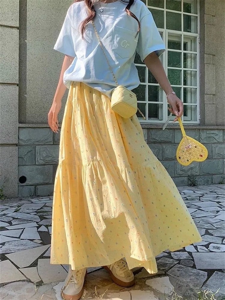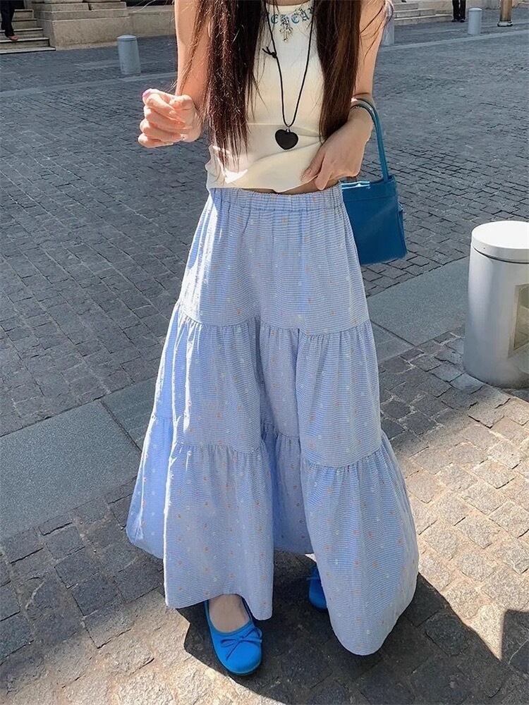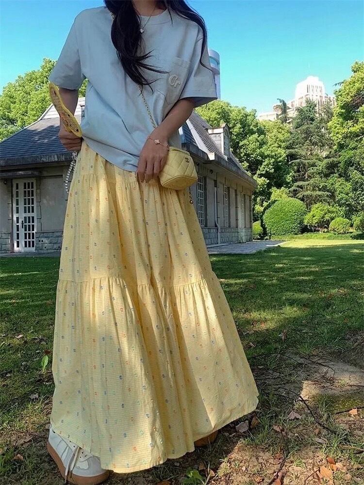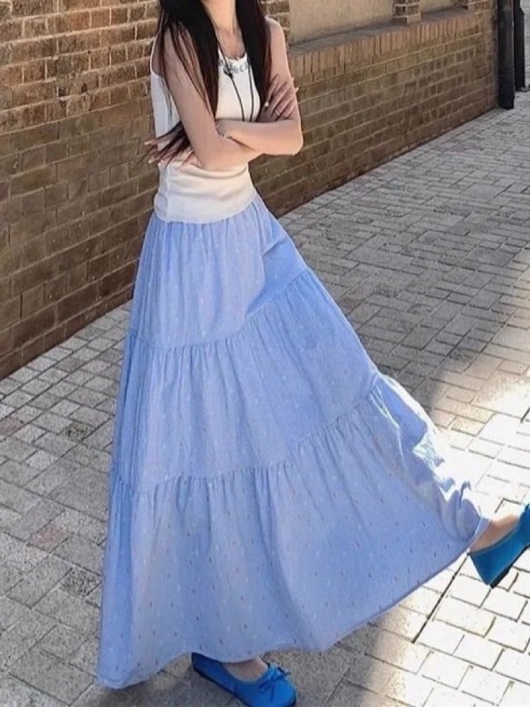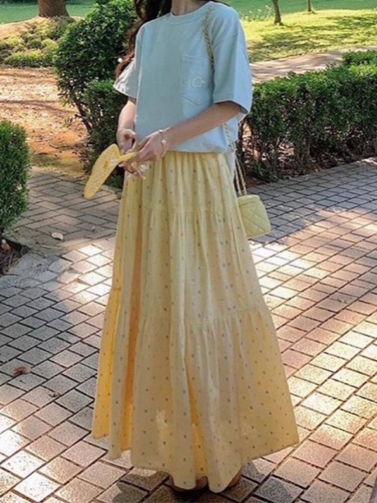 甘すぎないフェミニン ロングティアードスカート 大人可愛い カジュアル ガーリー お出かけ デート パステルカラー 体型カバー 大きいサイズ 韓国 CH10660