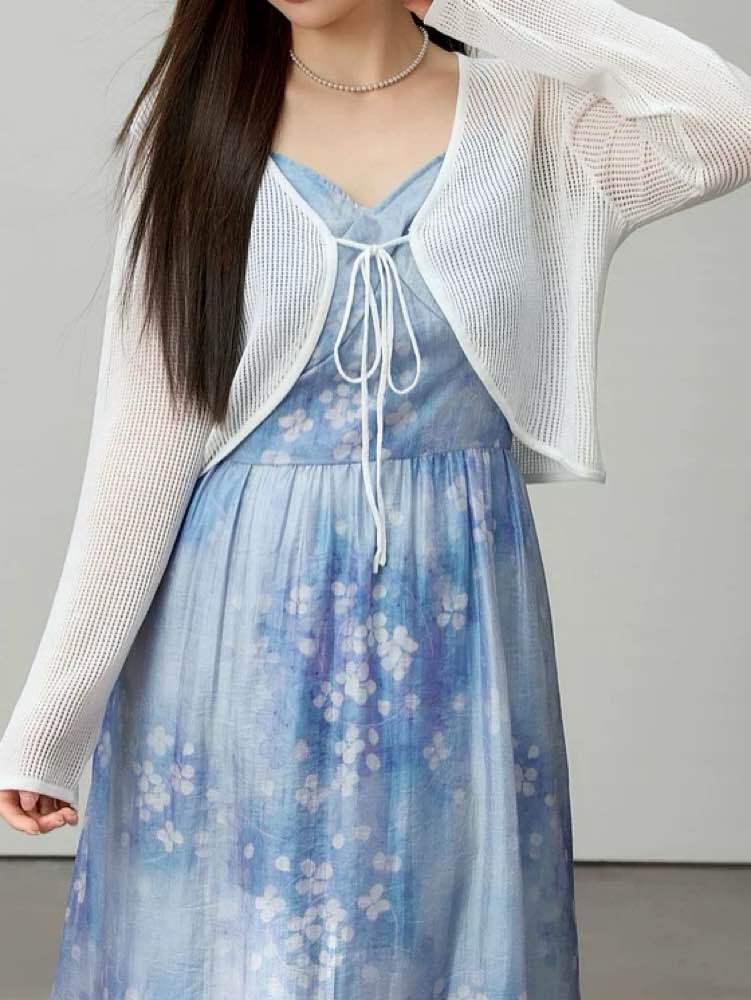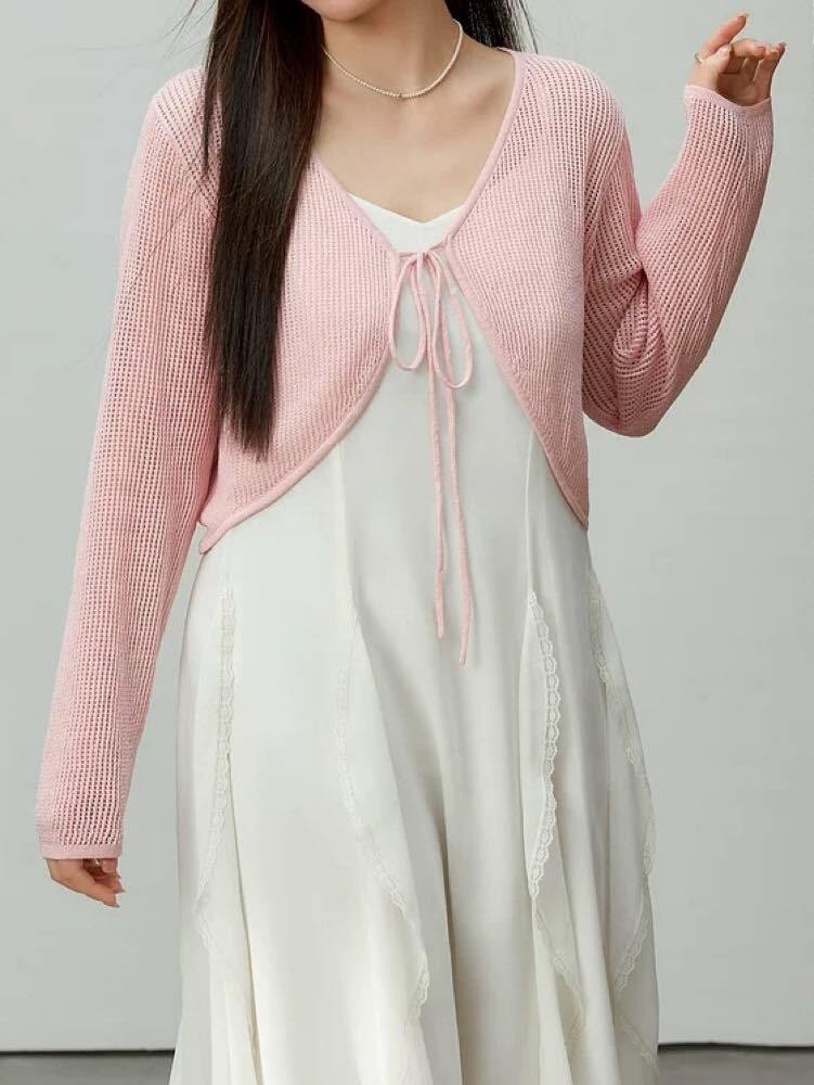 透け感×差し色で夏支度ばっちり メッシュカラーカーディガン 長袖 メッシュ リボン 透け感 お洒落 大人可愛い カジュアル 羽織り レイヤード 体型カバー 大きいサイズ 韓国 CH10693