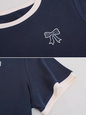 胸元にはリボンの刺繍がさりげない大人可愛さをプラス!