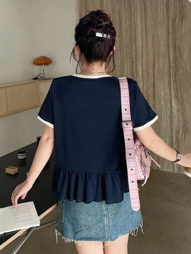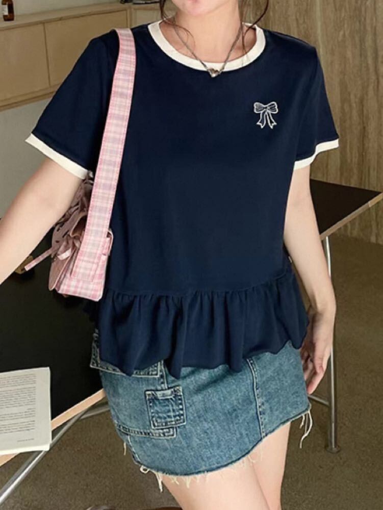 バイカラーデザインが目を引く、カジュアルガーリーなペプラムTシャツ♡