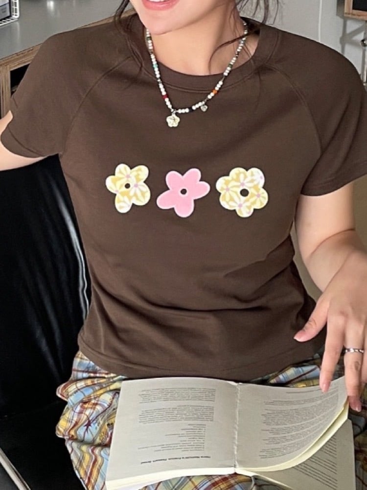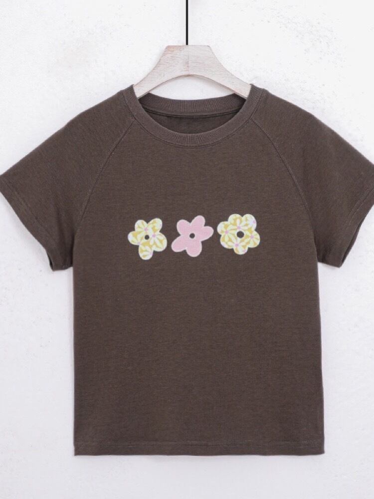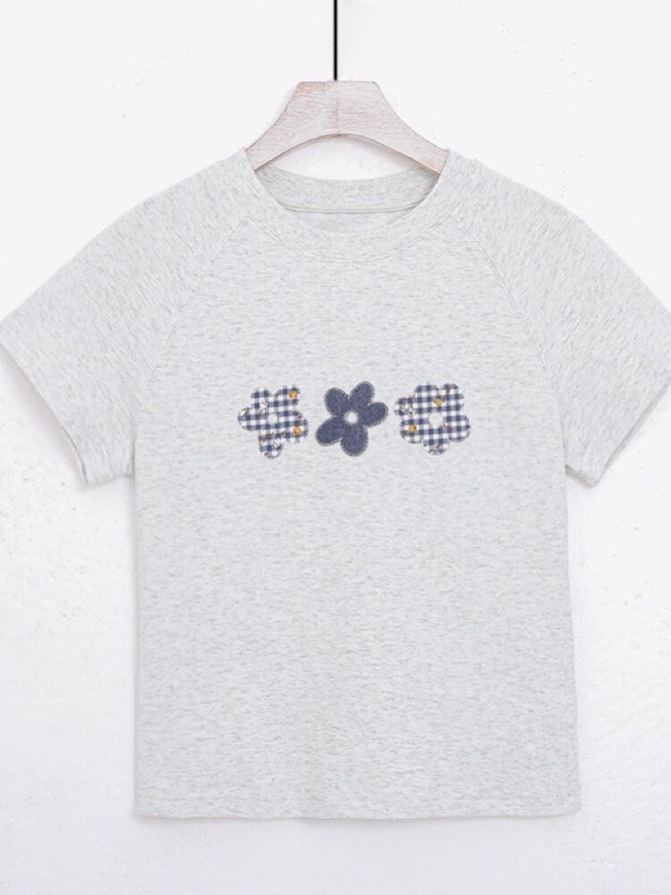 優しさをまとう花咲く一枚 フラワーアップリケTシャツ 半袖 リボン 大人可愛い 着映え カジュアル 着回し 細見え 体型カバー 大きいサイズ 韓国 CH10780