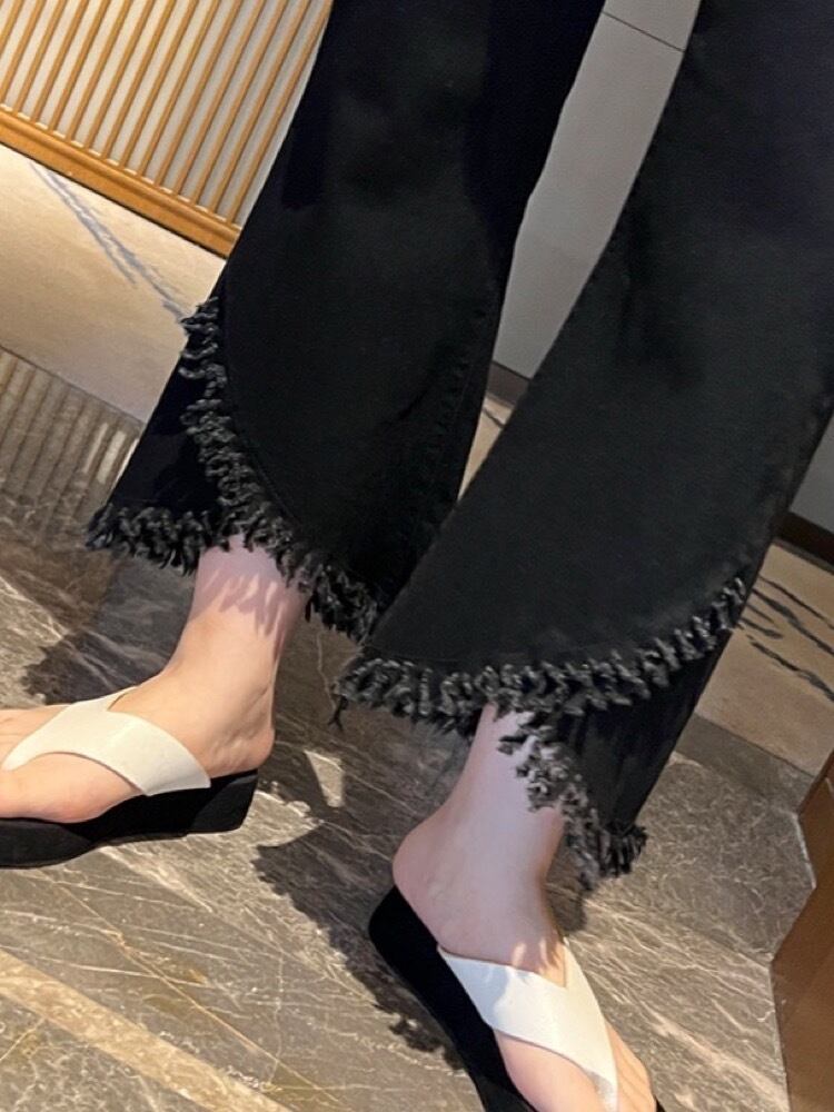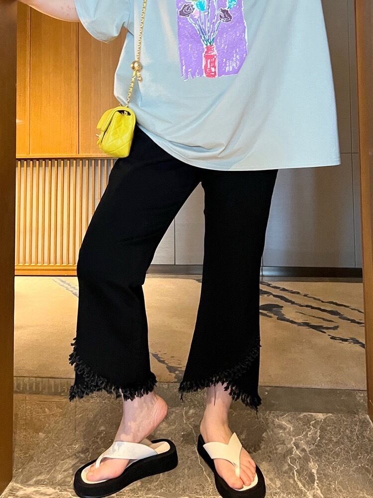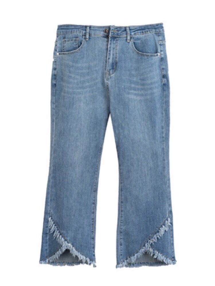 美脚見え叶える 裾フリンジ9分丈デニム お洒落 上品 フレア 大人可愛い カジュアル きれいめ 細見え 体型カバー 大きいサイズ 韓国 CH10788