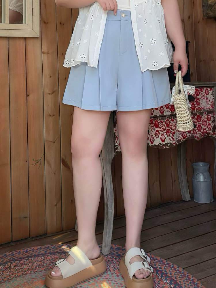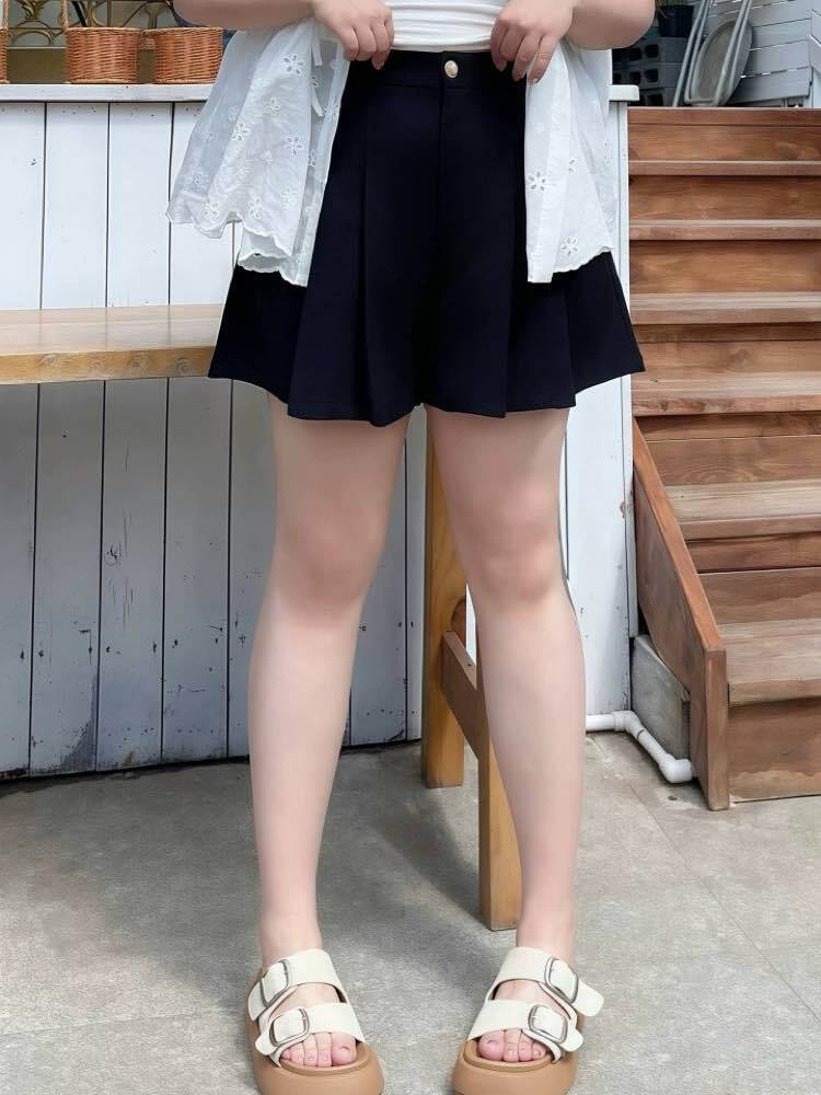 動きやすさも可愛さも叶う パールボタンプリーツショートパンツ 大人可愛い 上品 プリーツ ゴールド パール カジュアル フェミニン きれいめ お出かけ デート リラクシー 細見え 体型カバー 大きいサイズ 韓国 CH10739