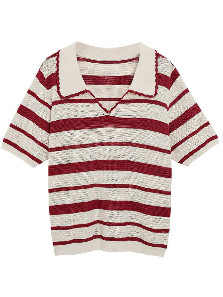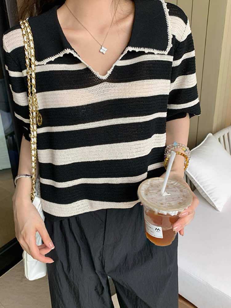 さらっと着られて、こなれ感たっぷり!シーズンムード満点なボーダー柄サマーポロニットです。