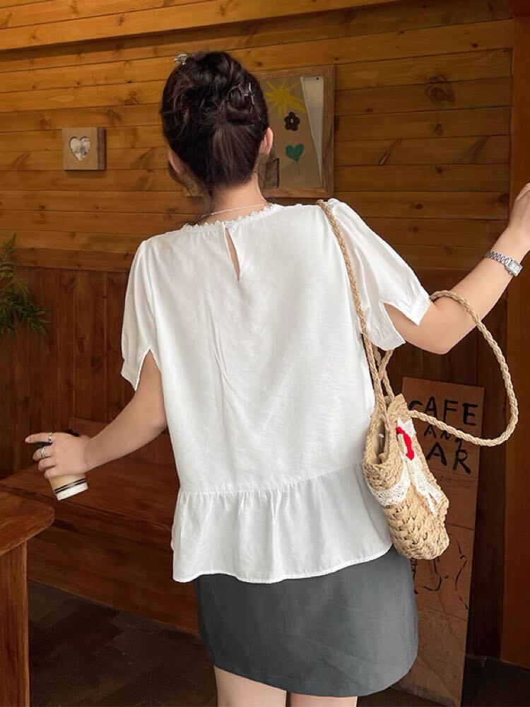 裾のペプラムデザインがふんわり体型をカバーしながら、ナチュラルにスタイルアップを叶えてくれます!袖にはさりげないスリット入りで、抜け感もバッチリ◎
