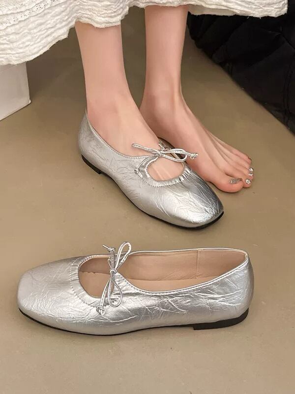 大人のかわいげは足元から ラウンドトゥリボンパンプス リボン 大人可愛い 上品 清楚 お洒落 ぺたんこ靴 差し色 シンプル 大きいサイズ 韓国 CH10851