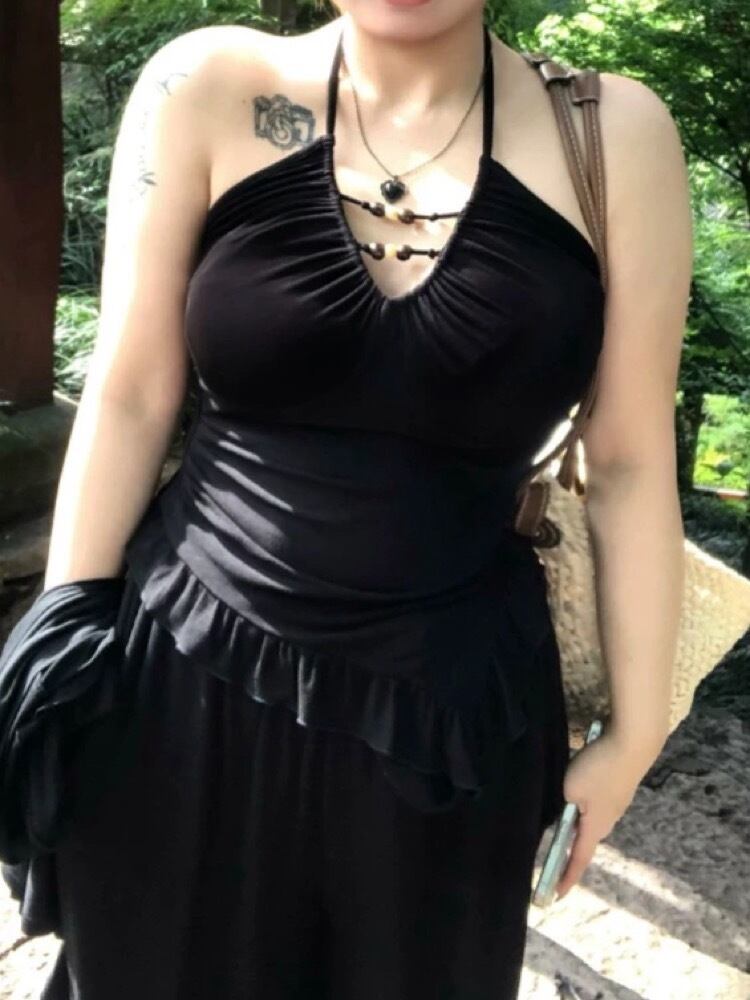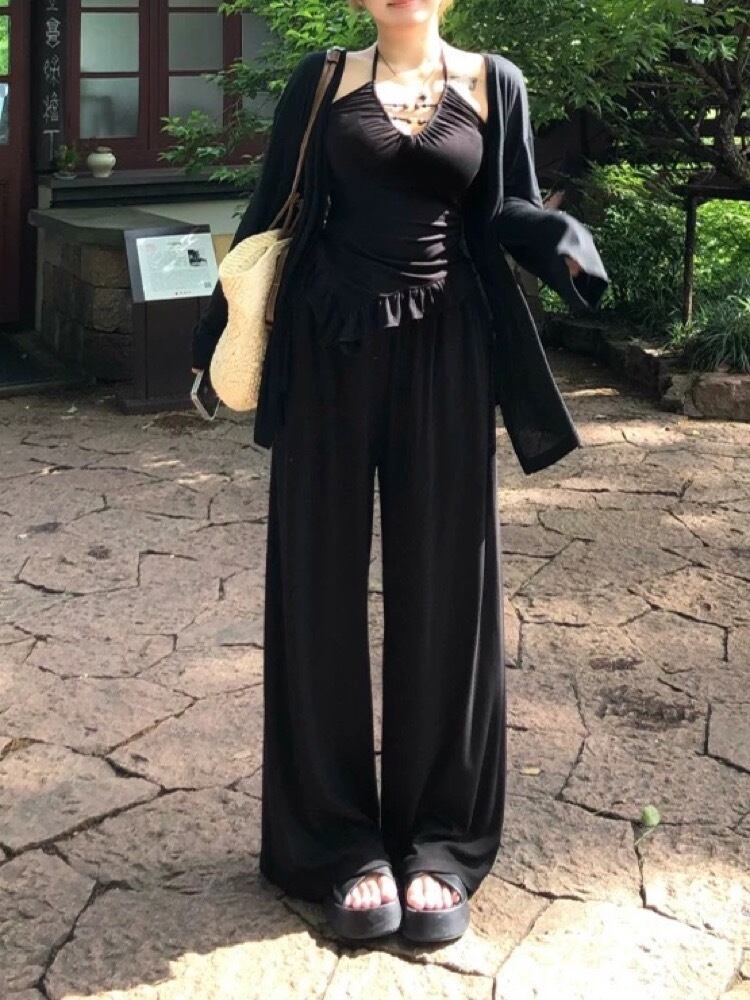 ヌケ感×フェミ感で攻める! ホルターネックキャミソール&カーディガンセット こなれ感 重ね着 羽織 体型カバー 大きいサイズ 韓国 CH10886