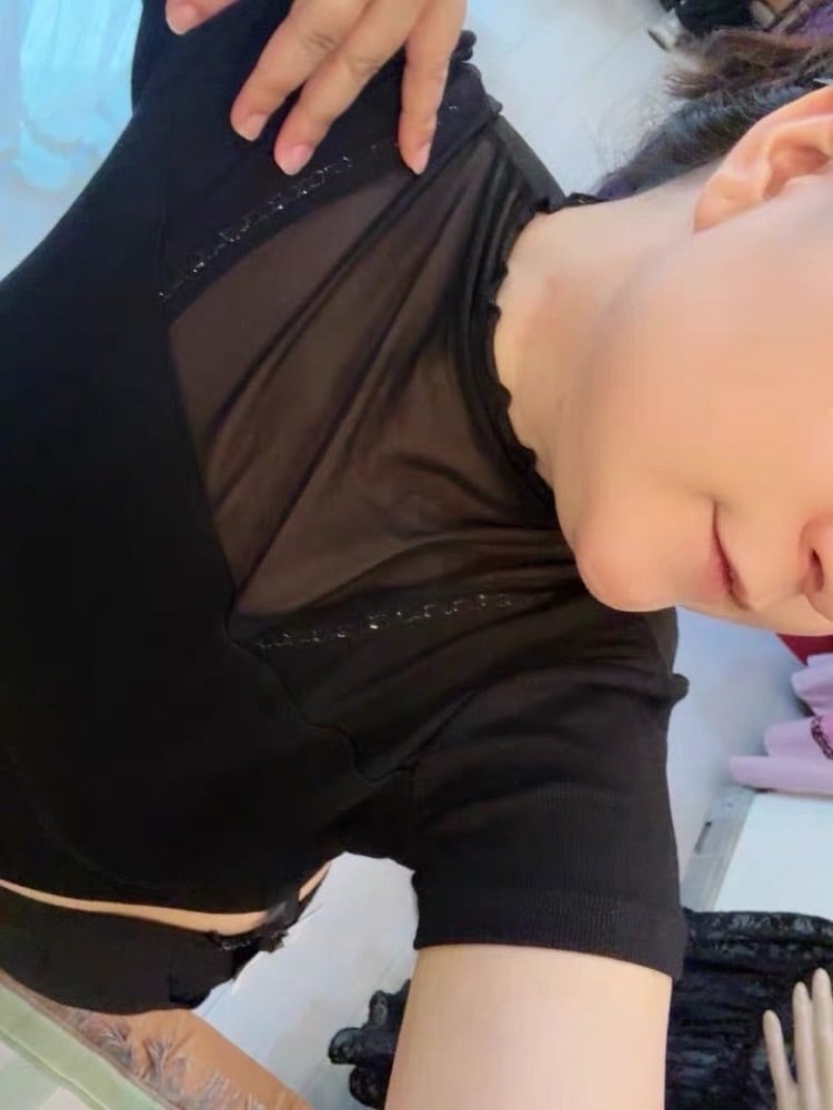 洗練された黒の魔法 ブラックシースルー切替ブラウス 半袖 ハイネック 透け感 フェミニン セクシー 上品 大人可愛い お洒落 体型カバー 大きいサイズ 韓国 CH10896