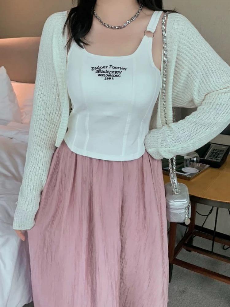 着るだけで、ちょい甘ストリートに決まる カップ付きロゴ刺繍タンクトップ お洒落 刺繍 大人可愛い Y2K カジュアル ストリート インナー ブラトップ 細見え 美シルエット 大きいサイズ 韓国 CH10868