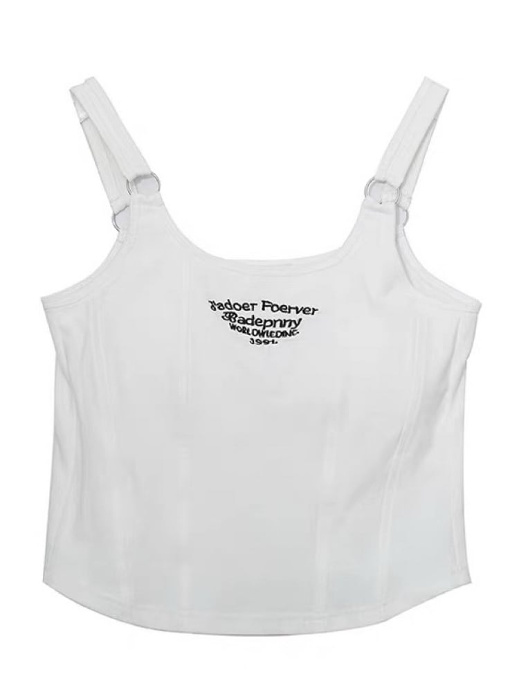 トレンド感たっぷりなY2Kスタイルを叶える♡モノトーン刺繍がアクセントのショート丈タンクトップです。