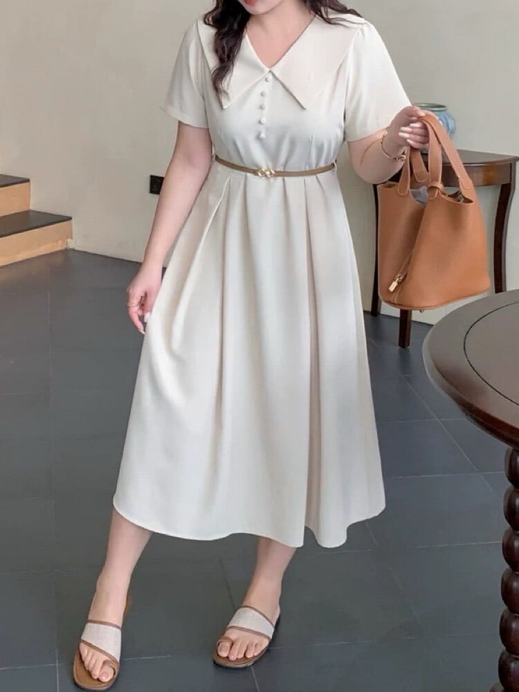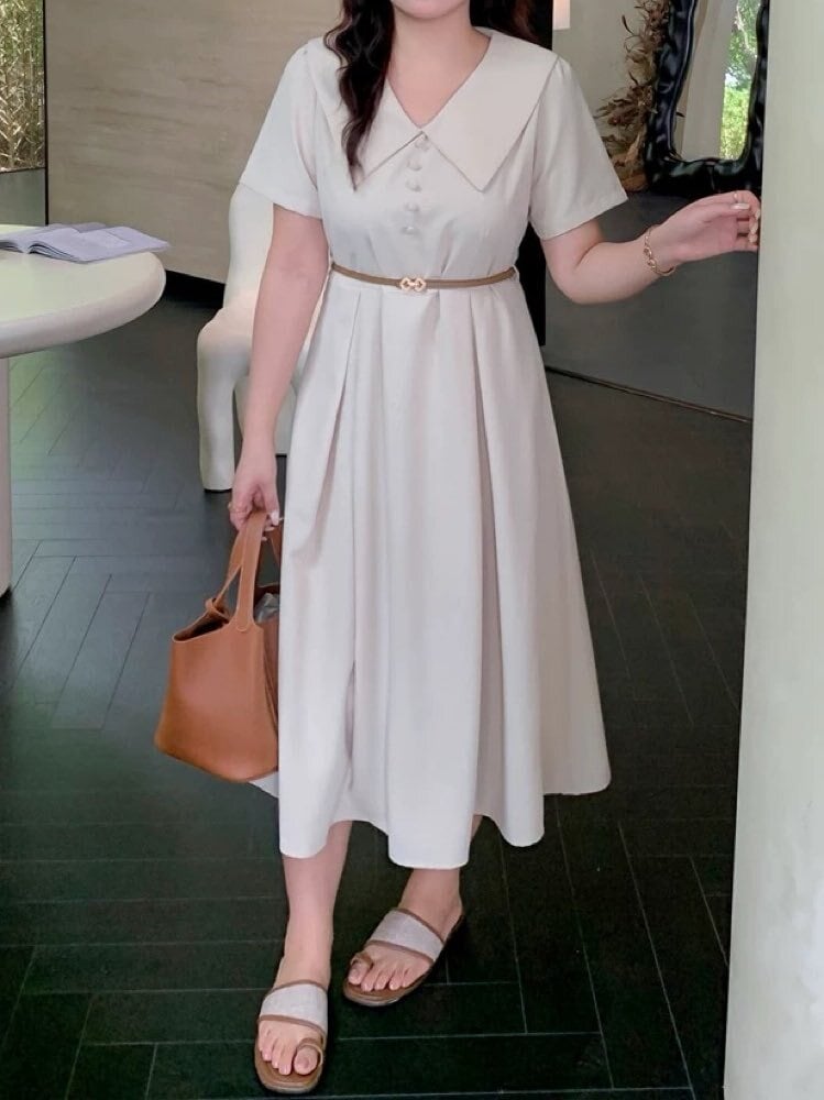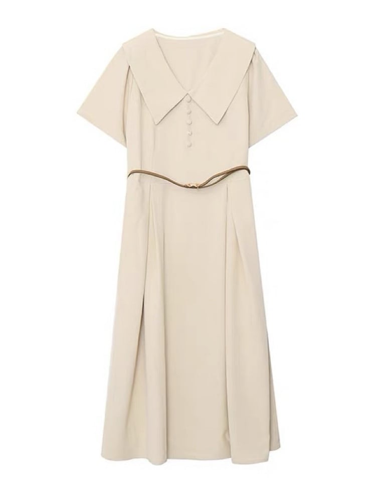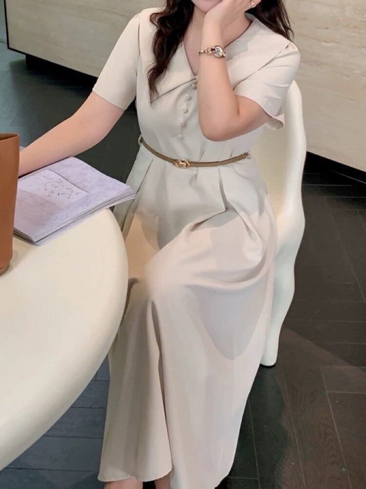 上品に可愛く、毎日をアップデート クラシカルウエストマークワンピース ベルト 半袖 おしゃれ 大人可愛い 上品 清楚 カジュアル きれいめ ミディ丈 お呼ばれ お出かけ くびれ 体型カバー 大きいサイズ 韓国 CH10870