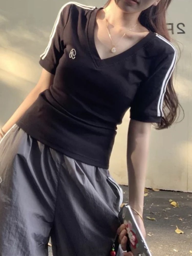 さりげなくでも印象的 ハートロゴプリントTシャツ 半袖 Y2K 美シルエット お洒落 大人可愛い カジュアル きれいめ 細見え 華奢 体型カバー 大きいサイズ 韓国 CH10905