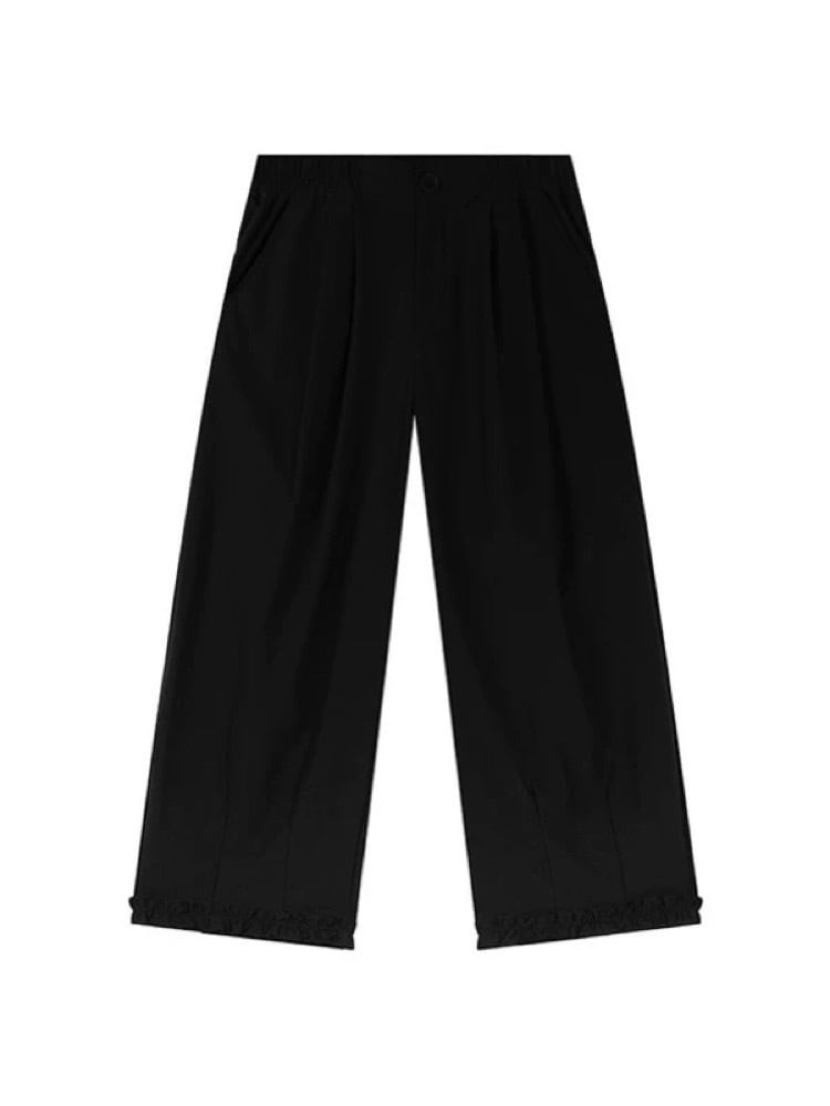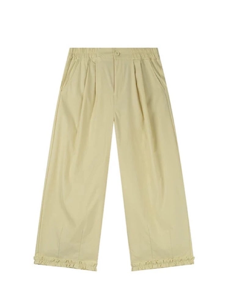 トレンドの“ゆるかわ”コーデにぴったりな、裾フリルが特徴のコットンパンツ。