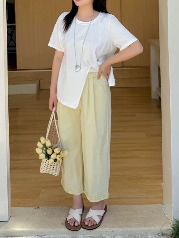 大人のリラックス感にさりげない可愛げを ふんわり裾フリルコットンパンツ 美シルエット お洒落 大人可愛い カジュアル きれいめ 細見え 体型カバー 大きいサイズ 韓国 CH10877