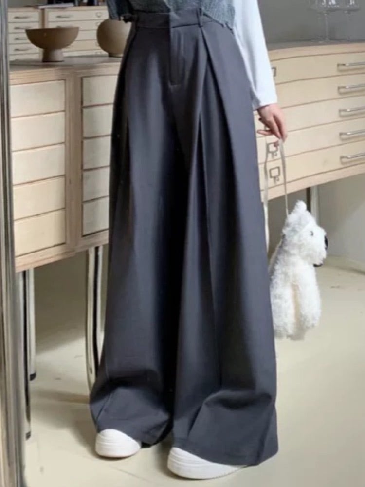 圧倒的美シルエット! タック入りワイドパンツ モード お洒落 大人可愛い カジュアル きれいめ 細見え 体型カバー 大きいサイズ 韓国 CH10913