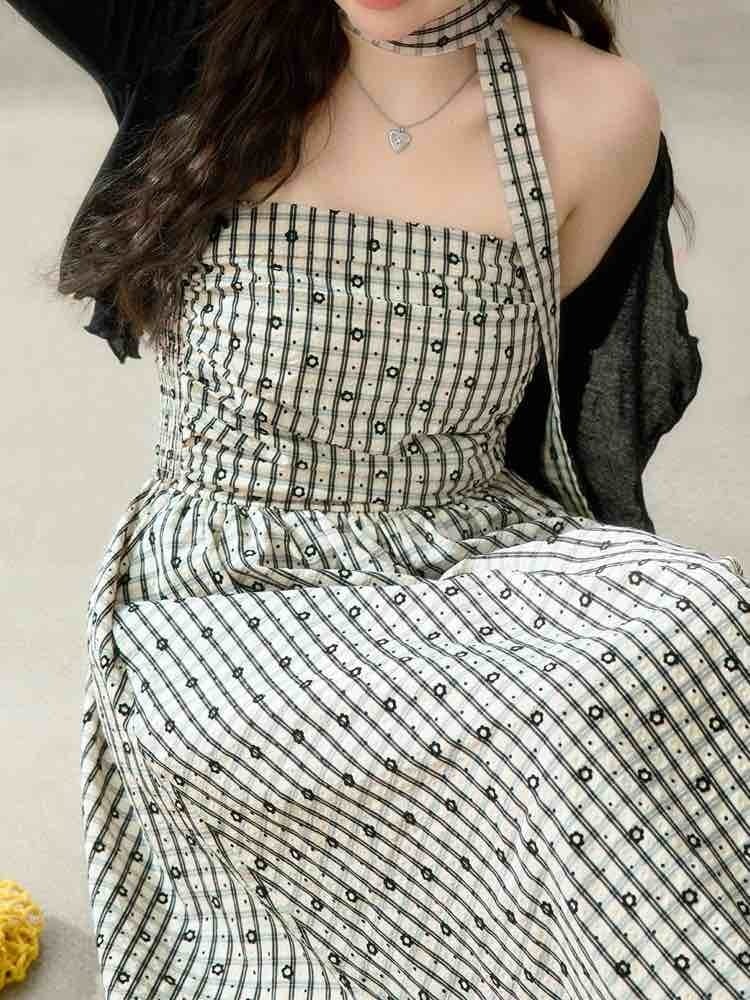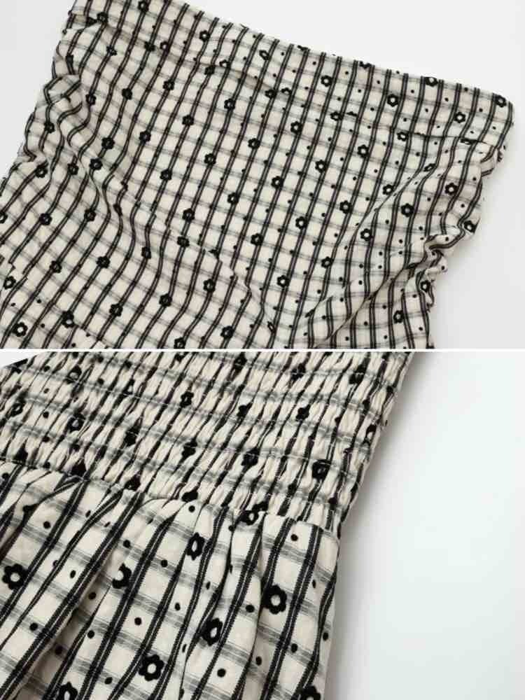 キュートなチェック柄に、さりげなくあしらわれた小さな花柄 とドット柄がアクセントになったモノトーンのチューブトップワンピース♡