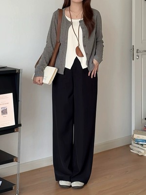 シンプルなデザインのカーディガンとスカートは、単品使いできるから毎日のコーデも自由自在!カーディガンの前を開けたり閉じたり、様々なアイテムとのコーディネートを楽しんで下さいね♪
