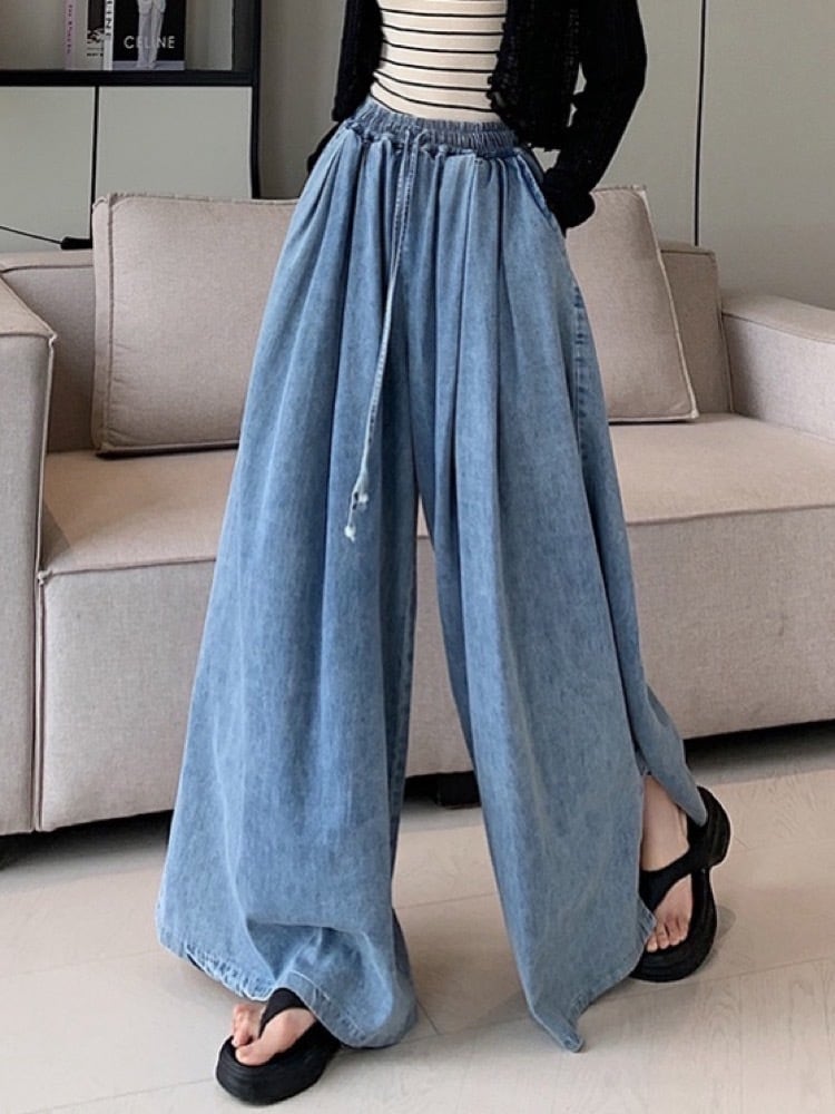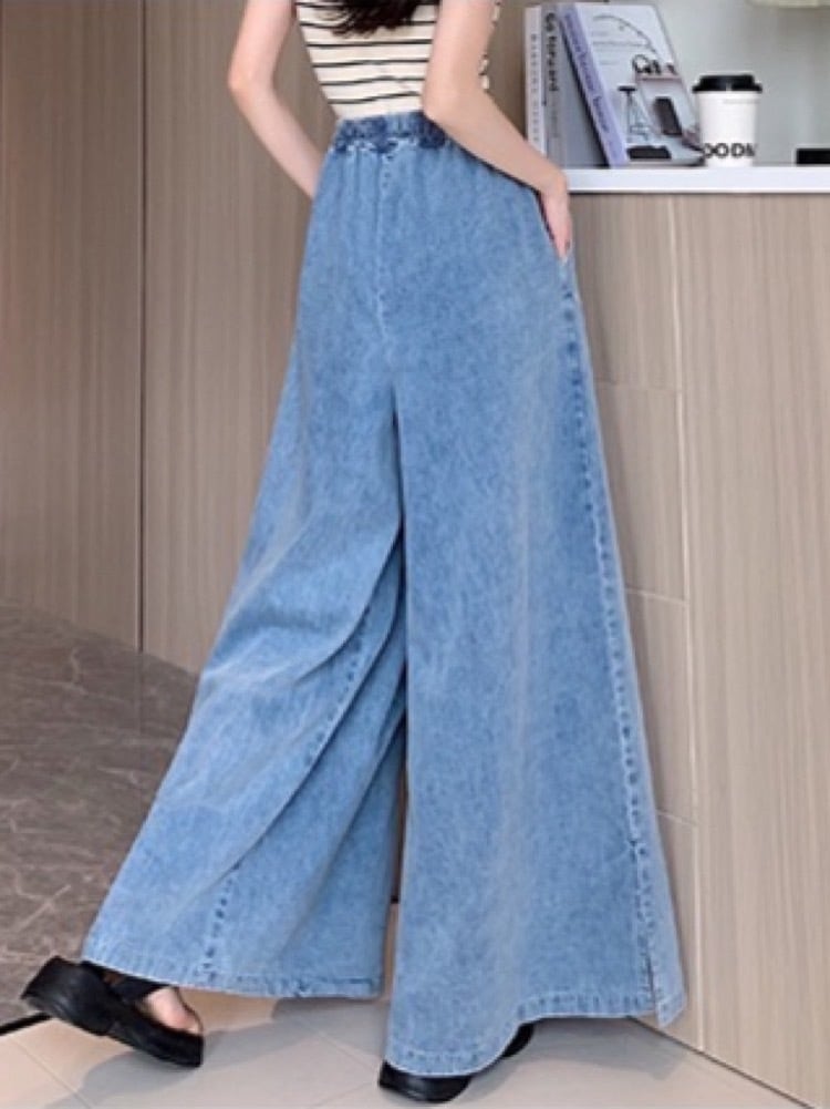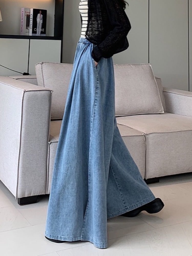 スカートのようなボリューム感が特徴のデニムワイドパンツ。