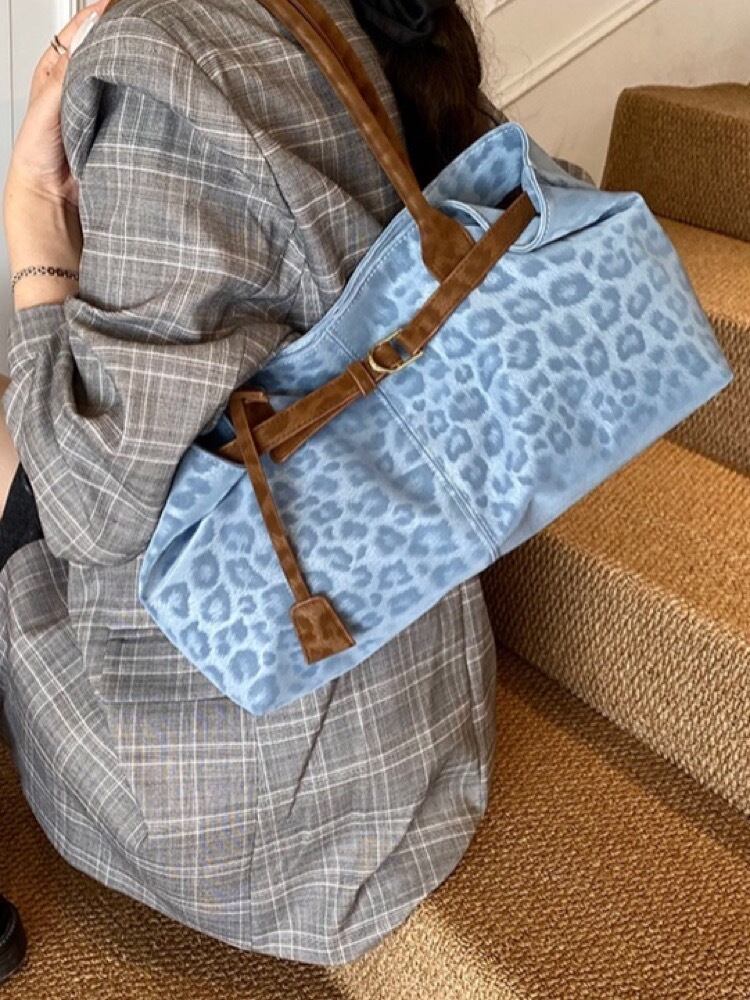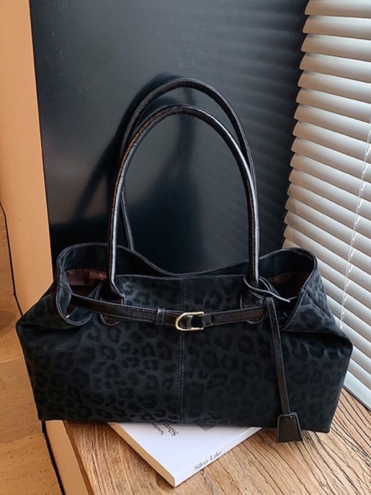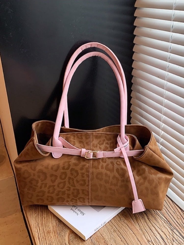 "レオパード柄×レザーベルトデザイントートバッグ"