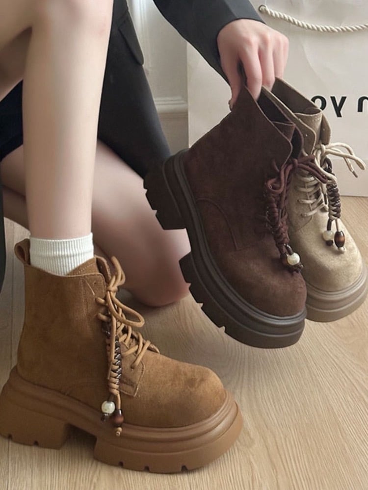 歩きやすくておしゃれ 厚底レースアップブーツ レースアップ 編み上げ ショートブーツ カジュアル ストリート 大人可愛い お洒落 シンプル 大きいサイズ 韓国 CH11126