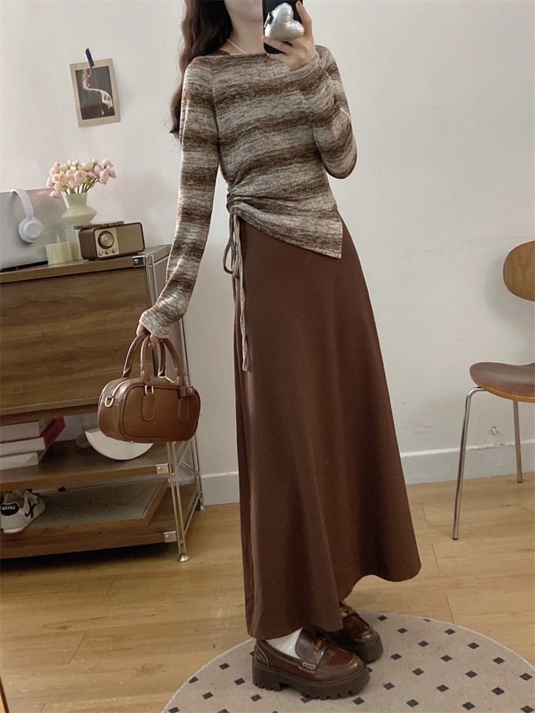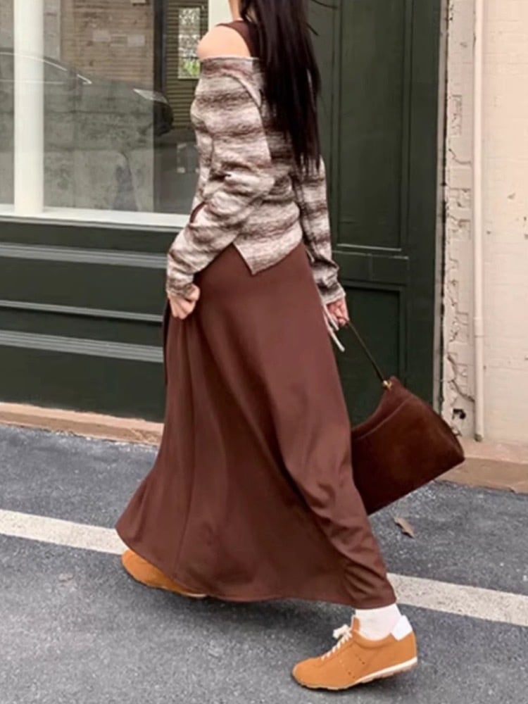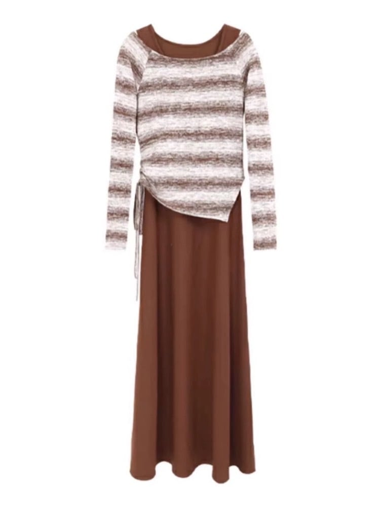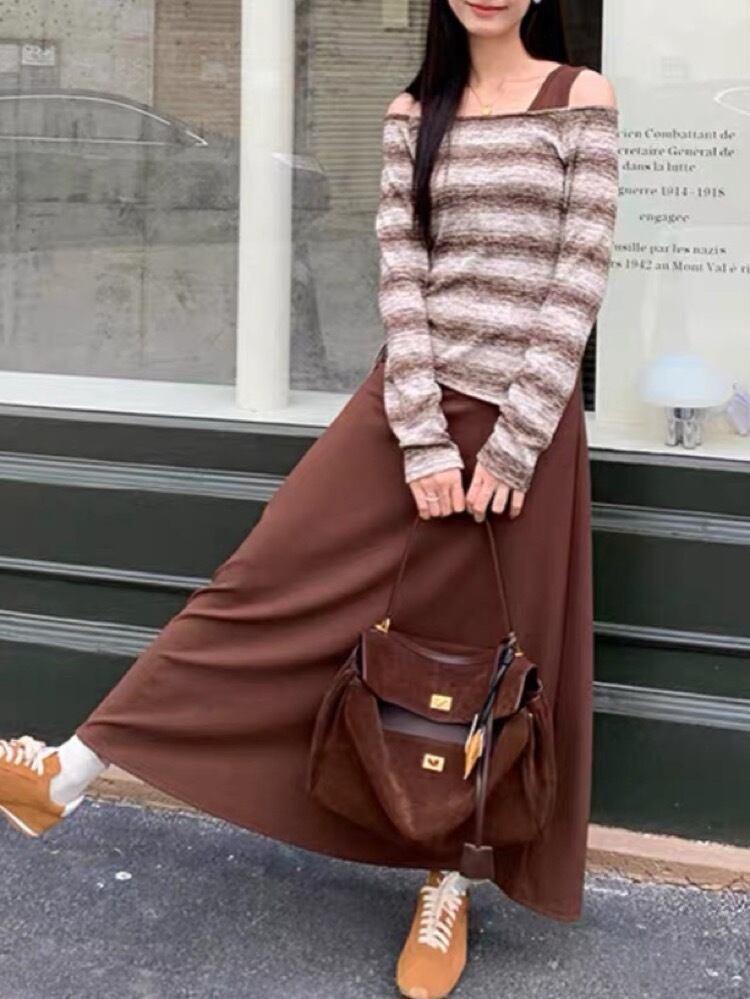 秋色でつくる大人の余裕コーデ マーブル調ニットトップス+キャミワンピース セット コーデ おしゃれ 大人可愛い きれいめ 上品 着回し 大きいサイズ 韓国 CH11105
