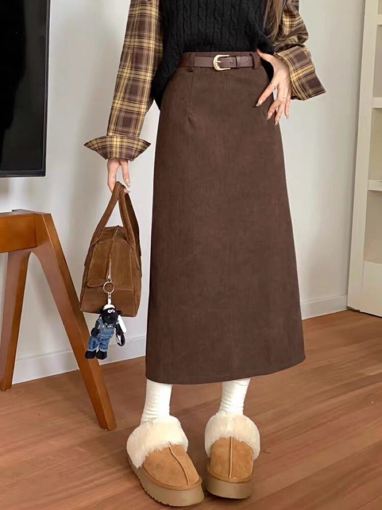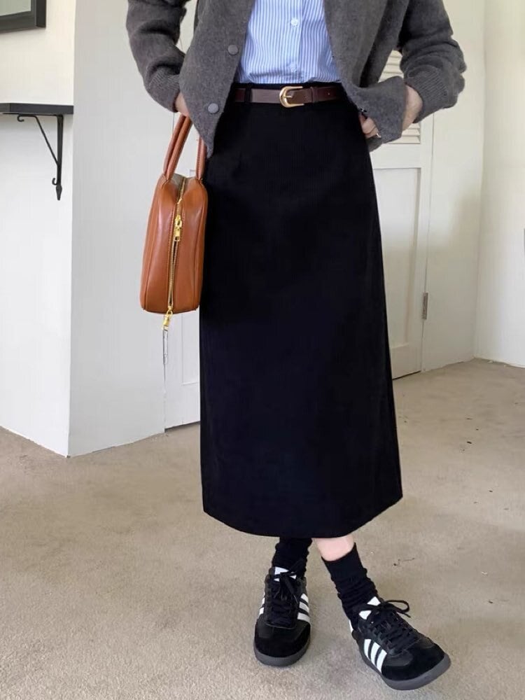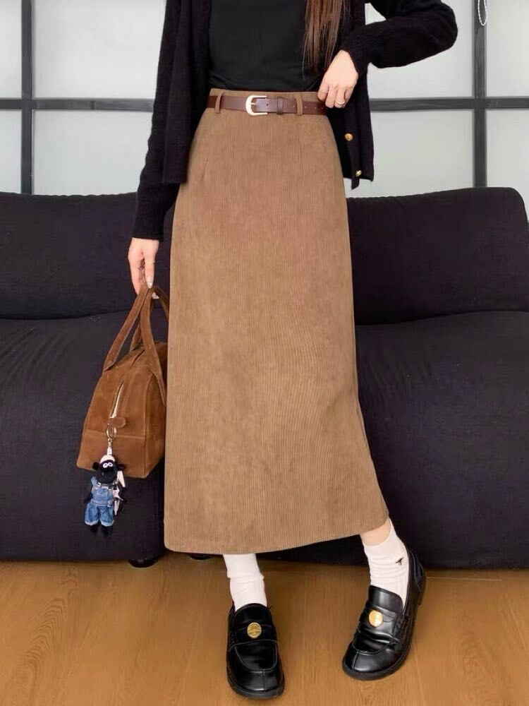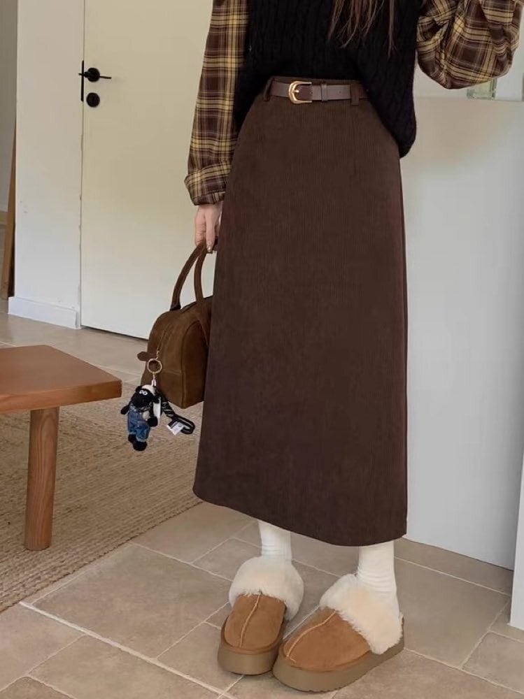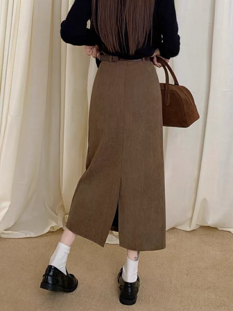 秋冬の大人レディスタイルはこれで決まり コーデュロイミディ丈スカート 秋冬 スリット 大人可愛い カジュアル きれいめ おしゃれ 着回し 脚長 体型カバー 大きいサイズ 韓国 CH10968